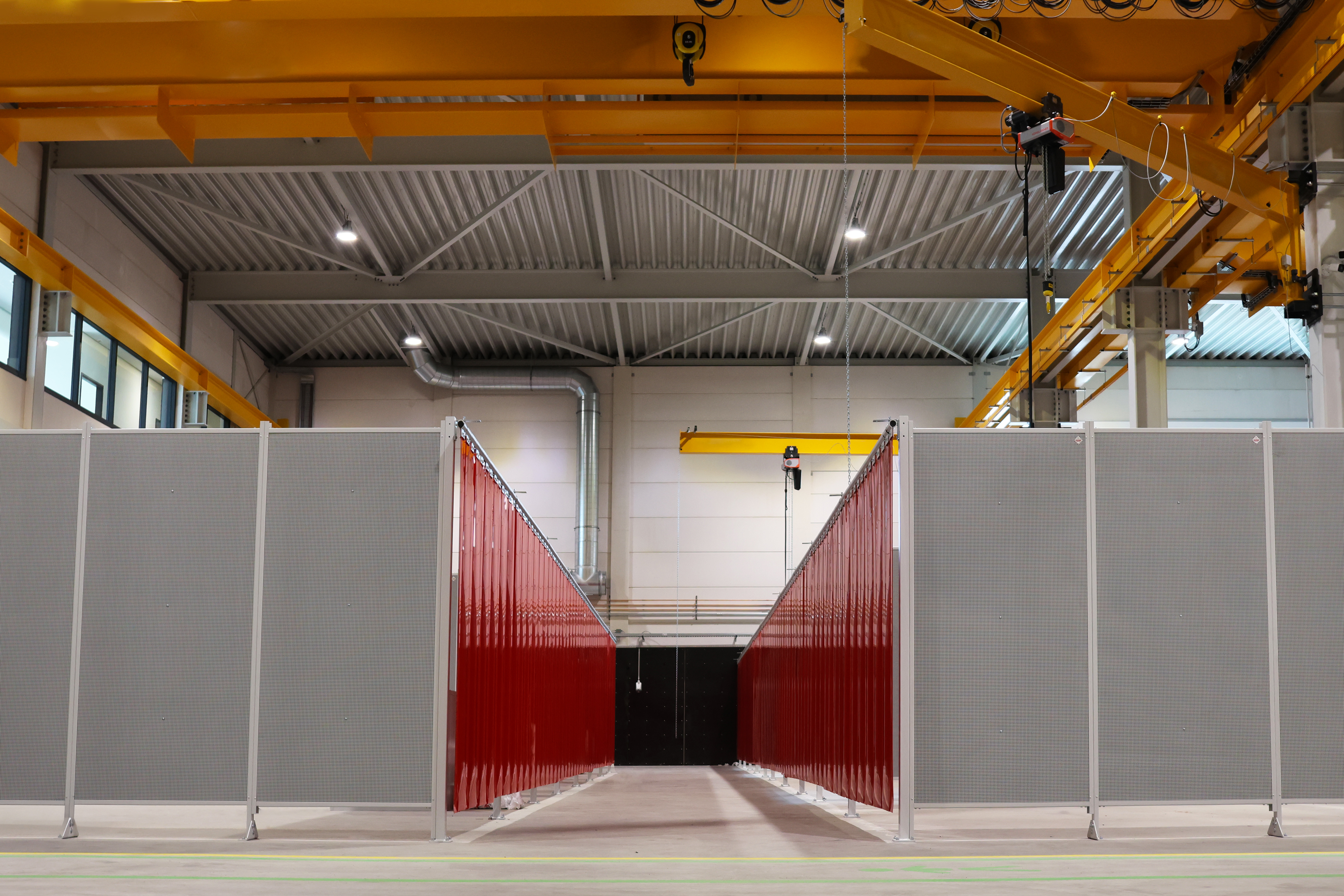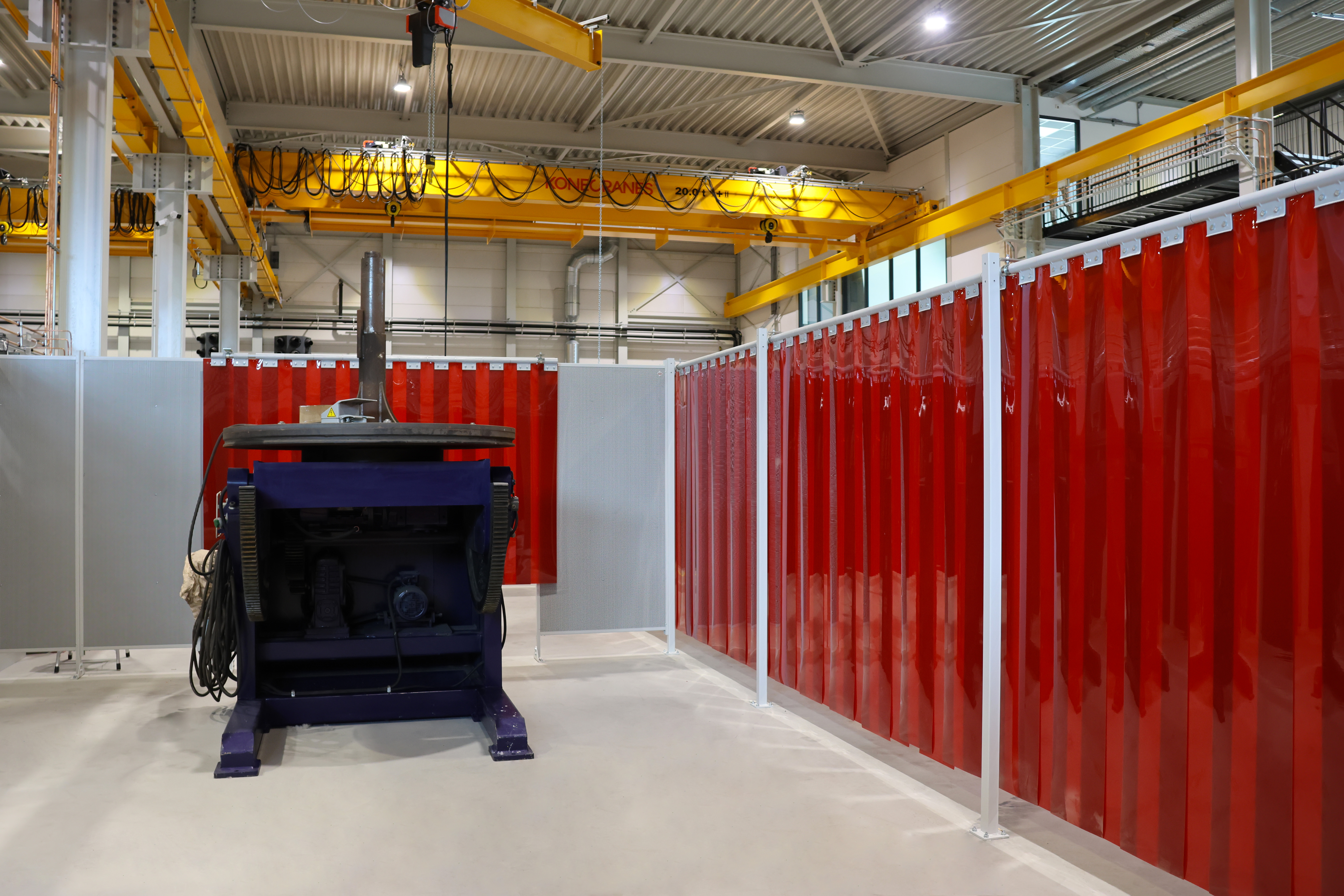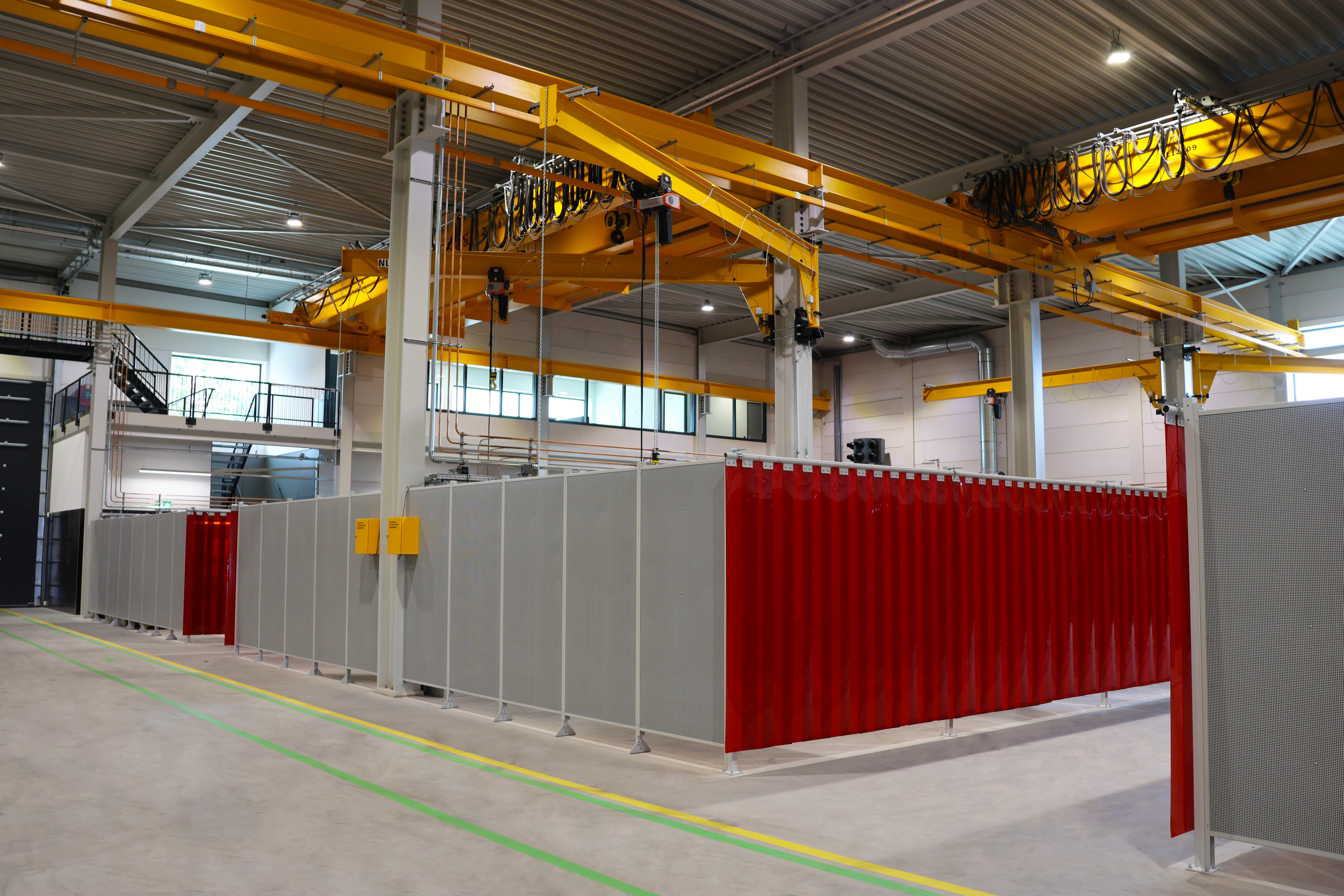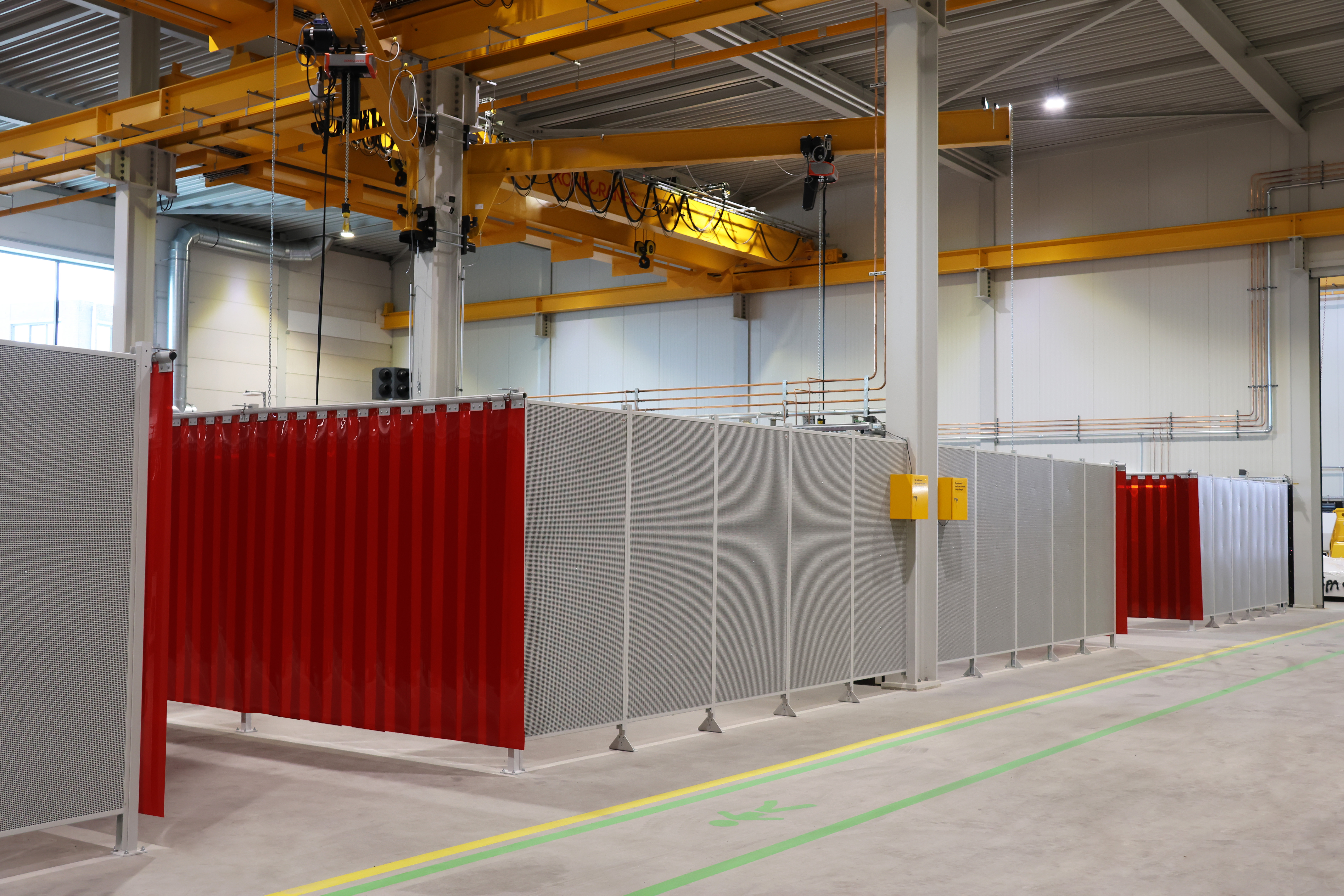 Cepro lieferte eine maßgeschneiderte Lösung mit festen Schweißlamellen und schalldämpfenden Wänden. Die neue Anordnung macht die Arbeitsplätze logisch, übersichtlich und professionell, wodurch die Mitarbeiter angenehmer arbeiten können und die Kunden sofort einen positiven Eindruck erhalten.